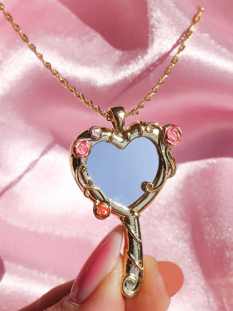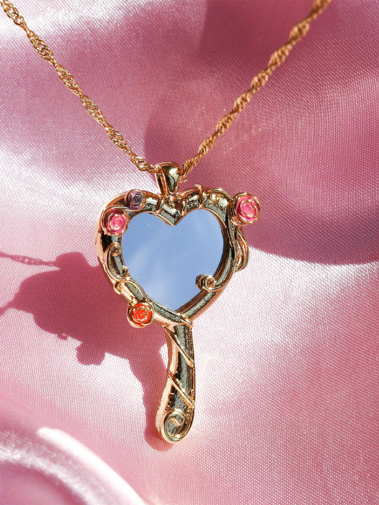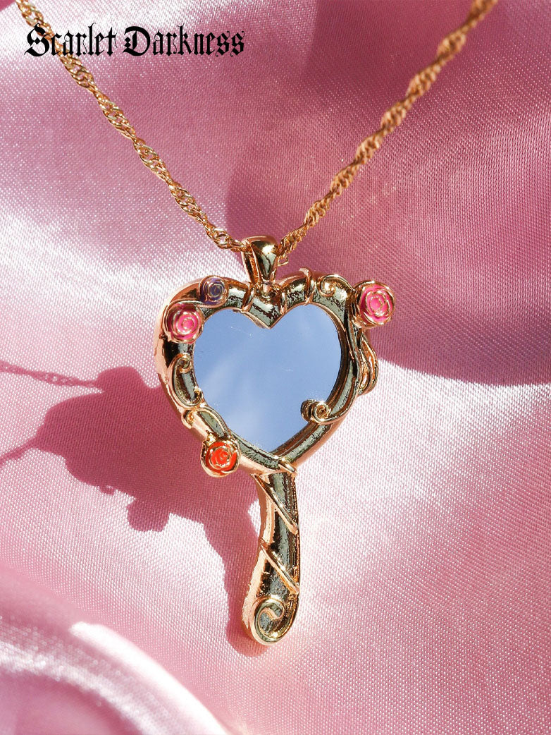 Vintage Heart Mirror Pendant Charming Necklace barbie and the diamond castle