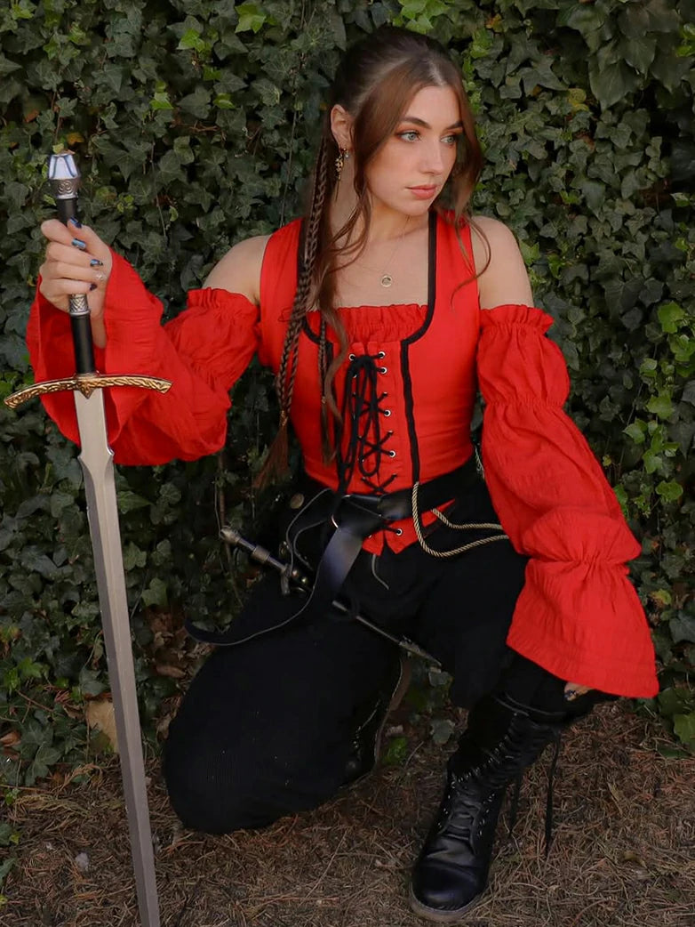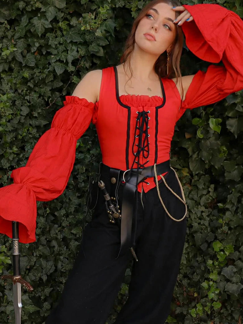 The off-the-shoulder design and ruffle trim add a touch of romance, while the long sleeves and bandeau navel style elevate your look. Perfect for adding a touch of old-world charm to any outfit.