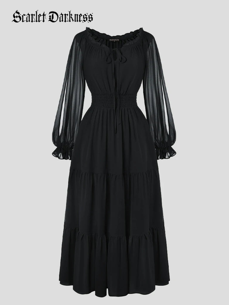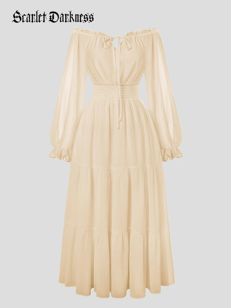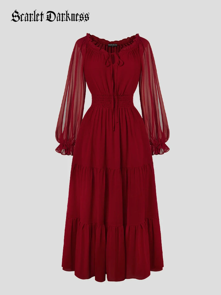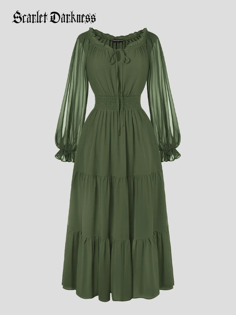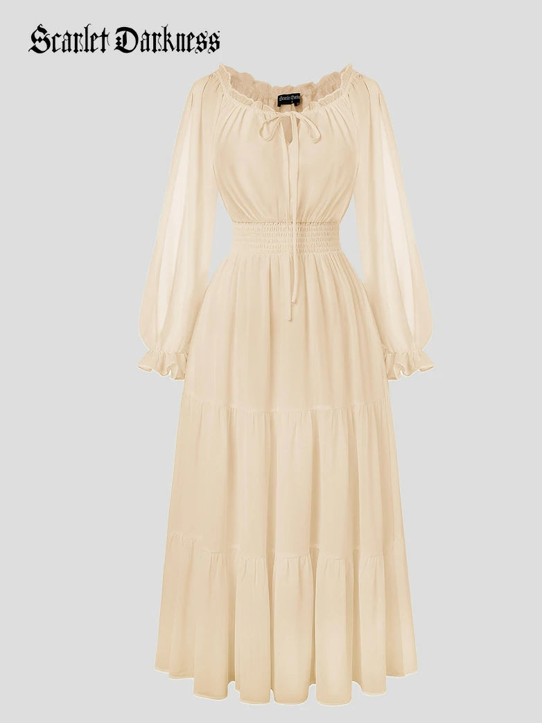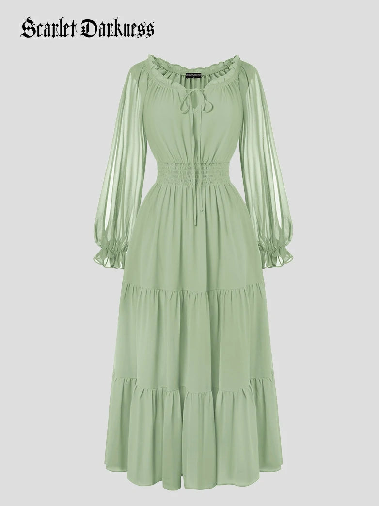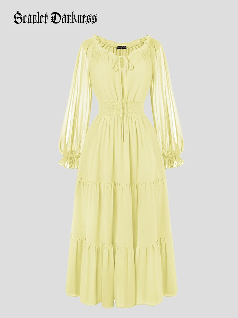 Renaissance Pocket Dress Elastic Waist Chiffon Sleeve Long Sleeve Tiered Maxi Dress