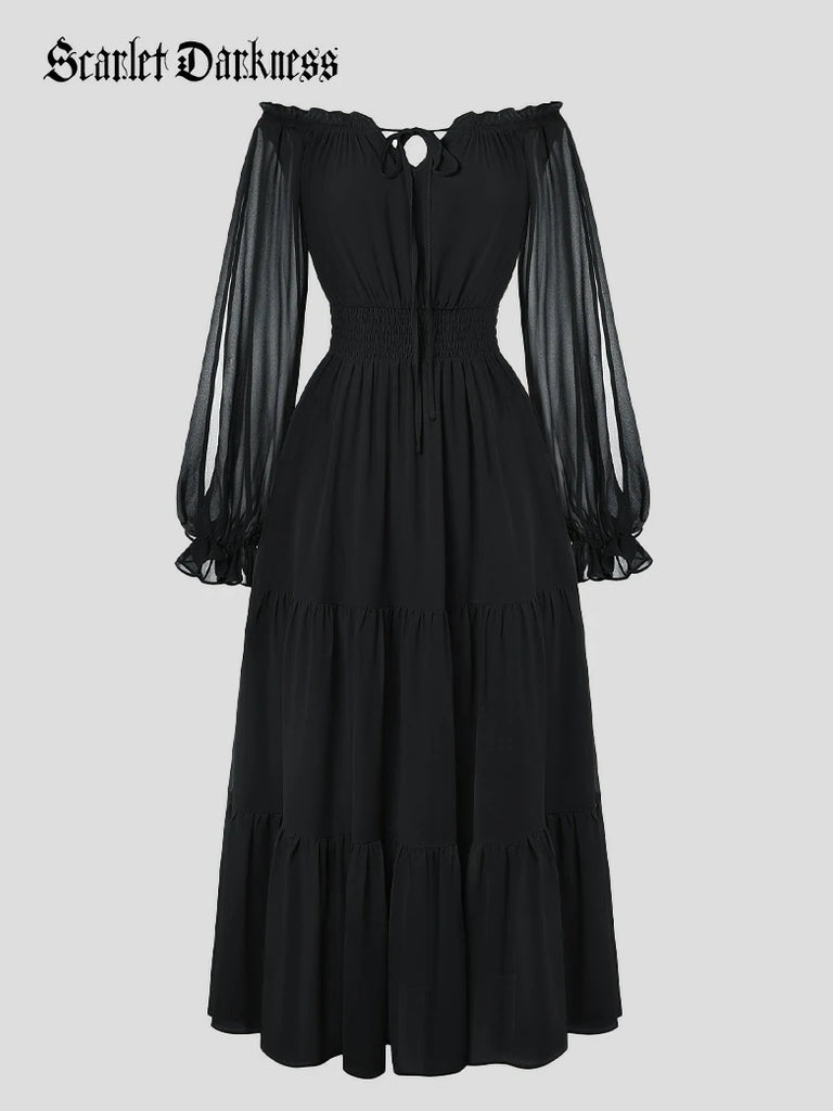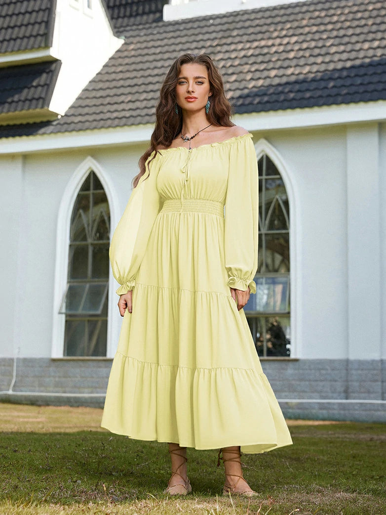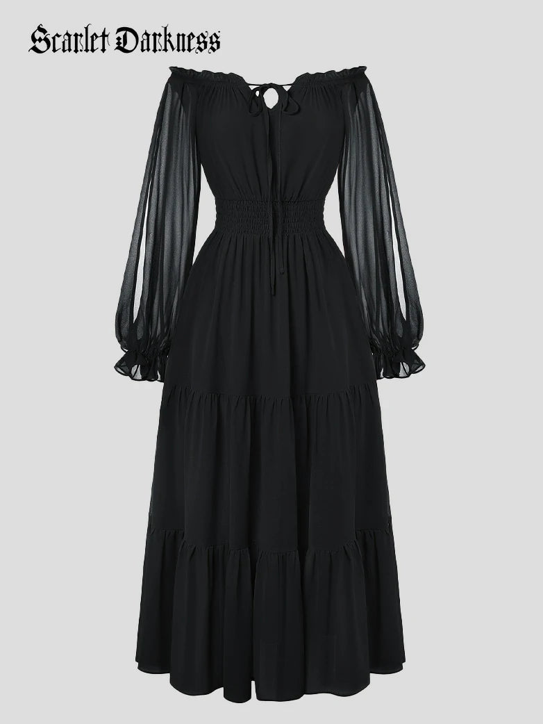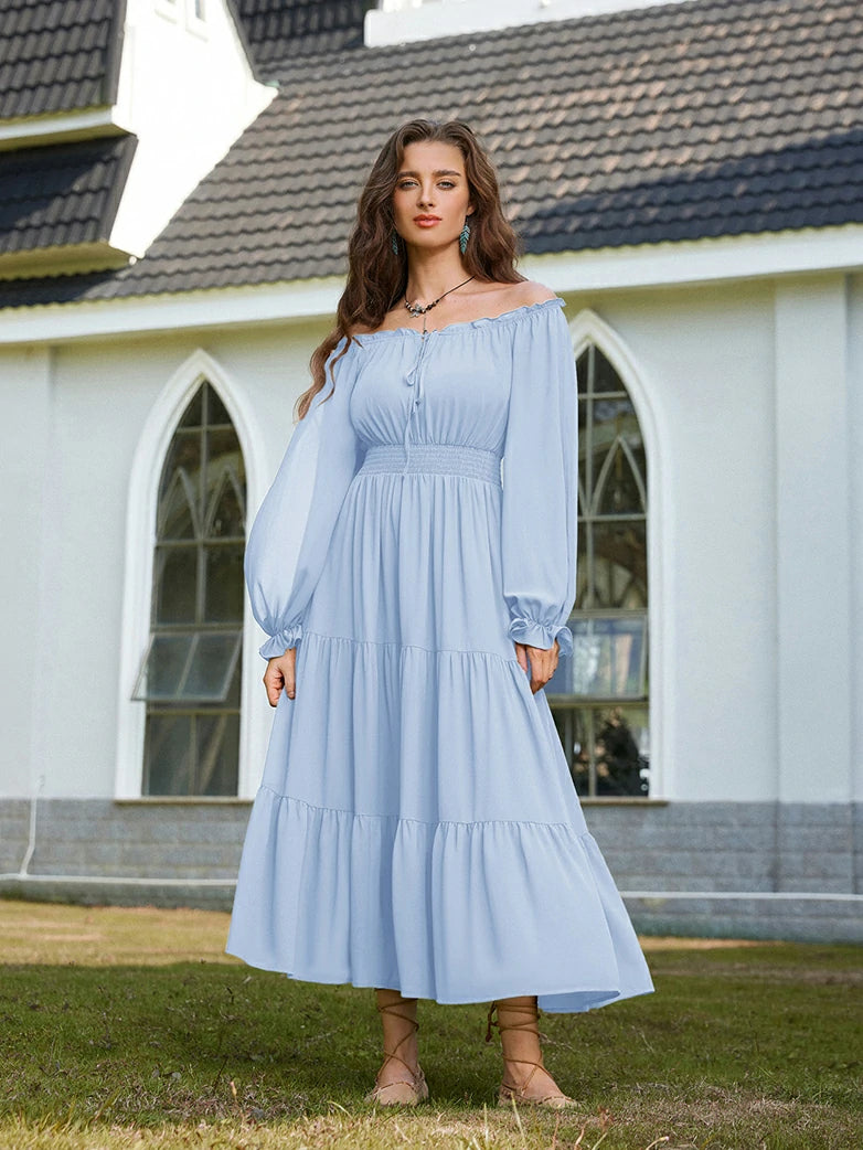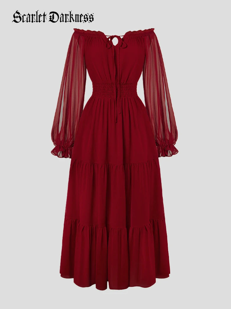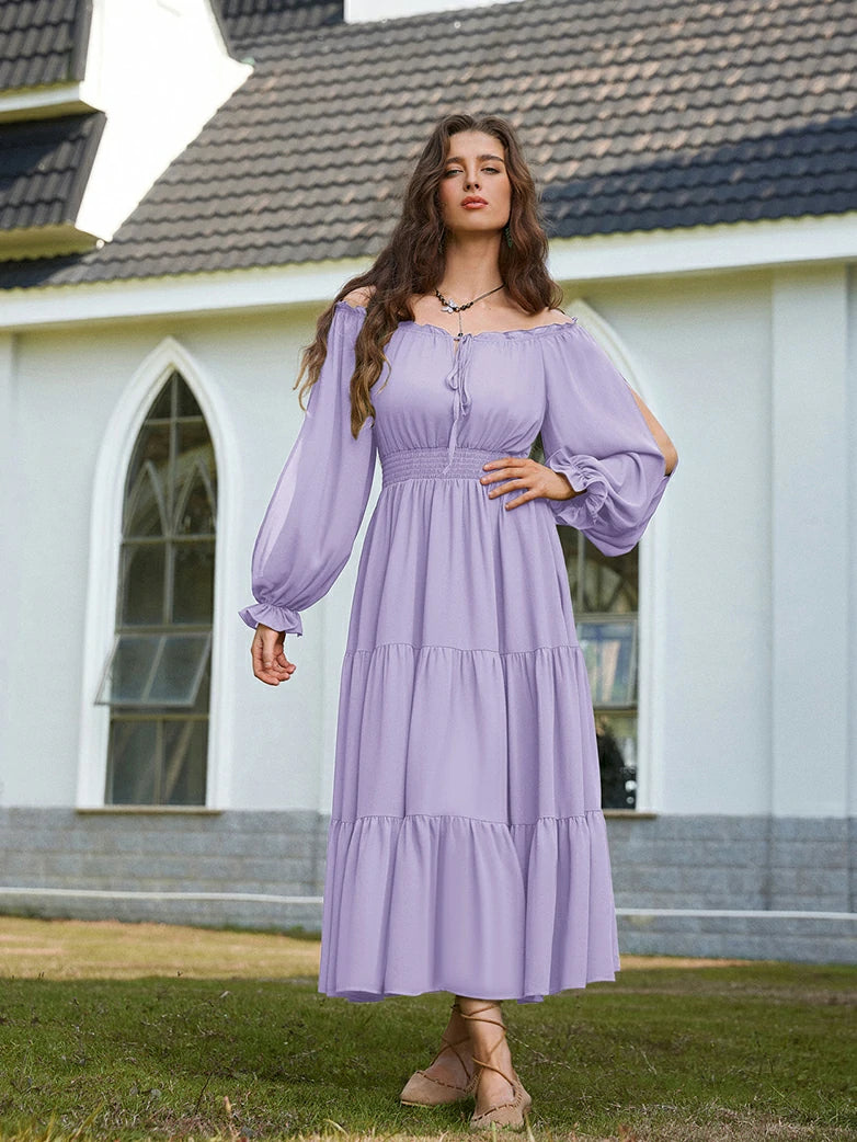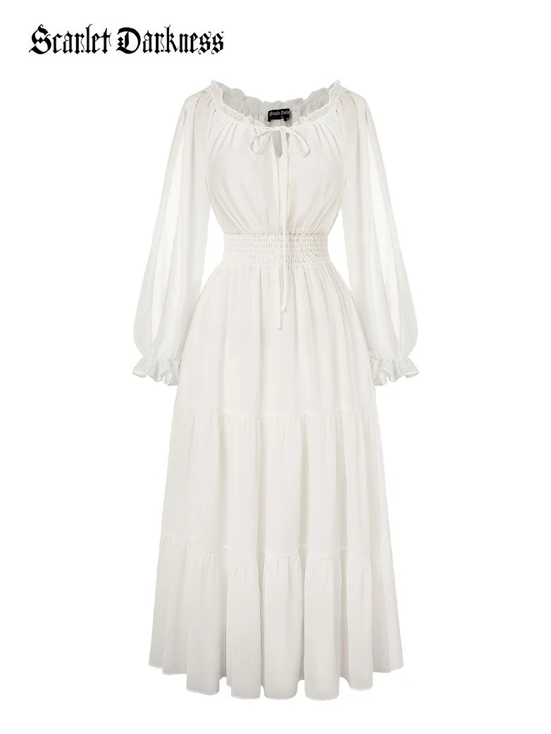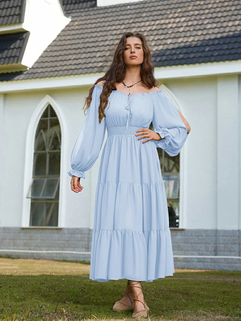 Renaissance Pocket Dress Elastic Waist Chiffon Sleeve Long Sleeve Tiered Maxi Dress