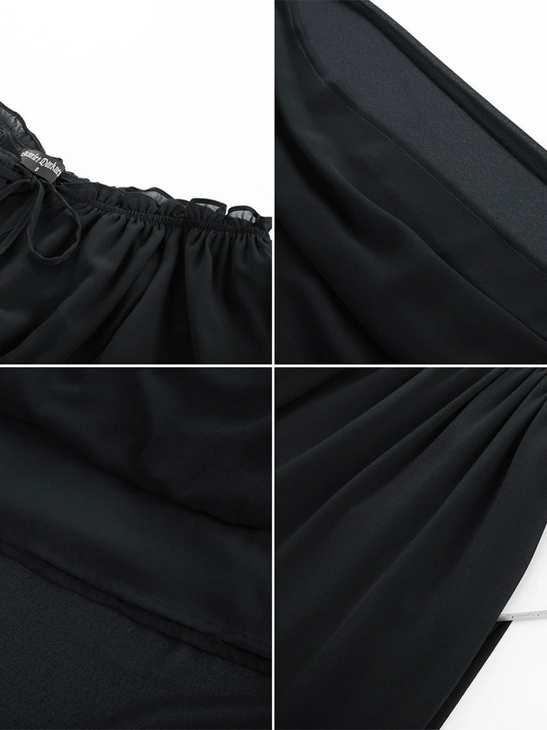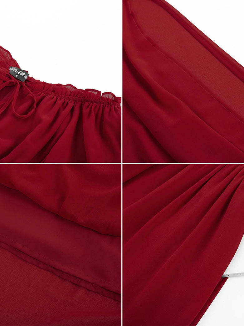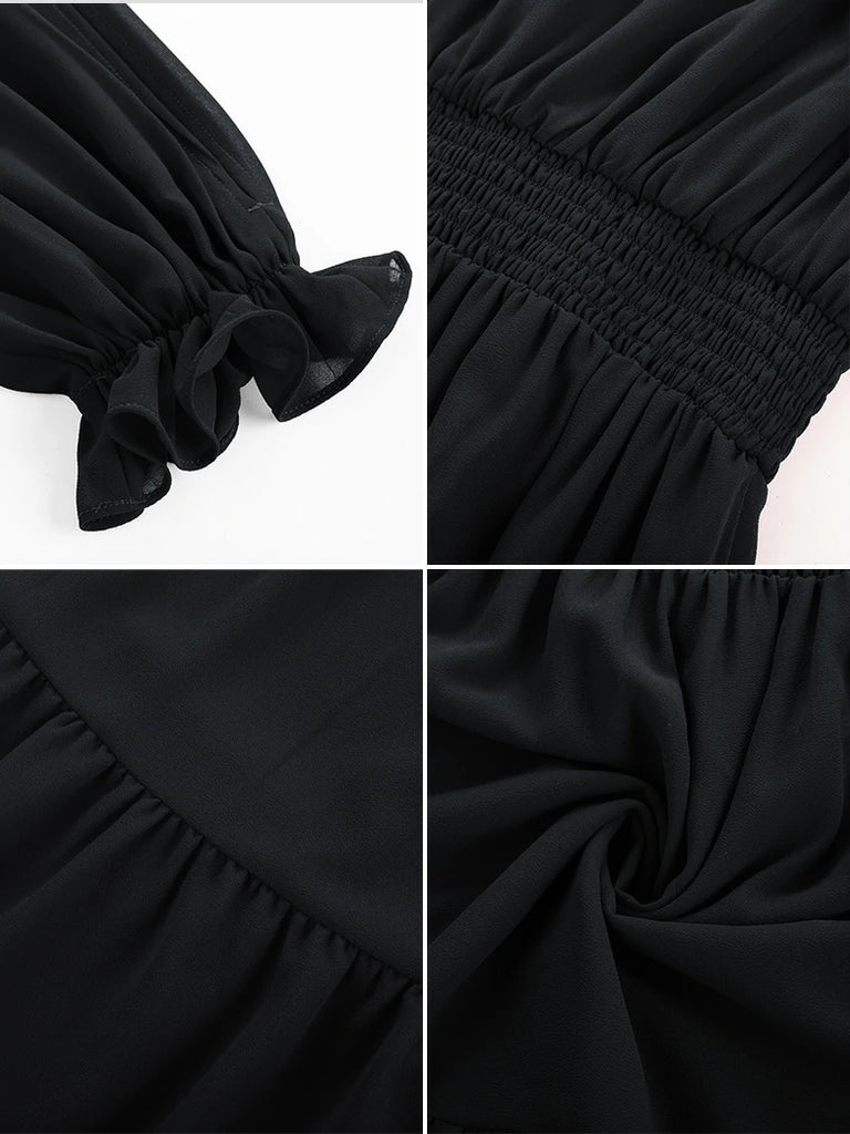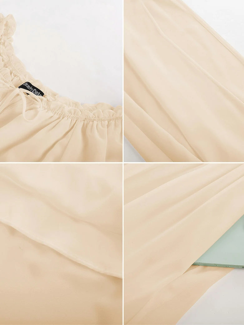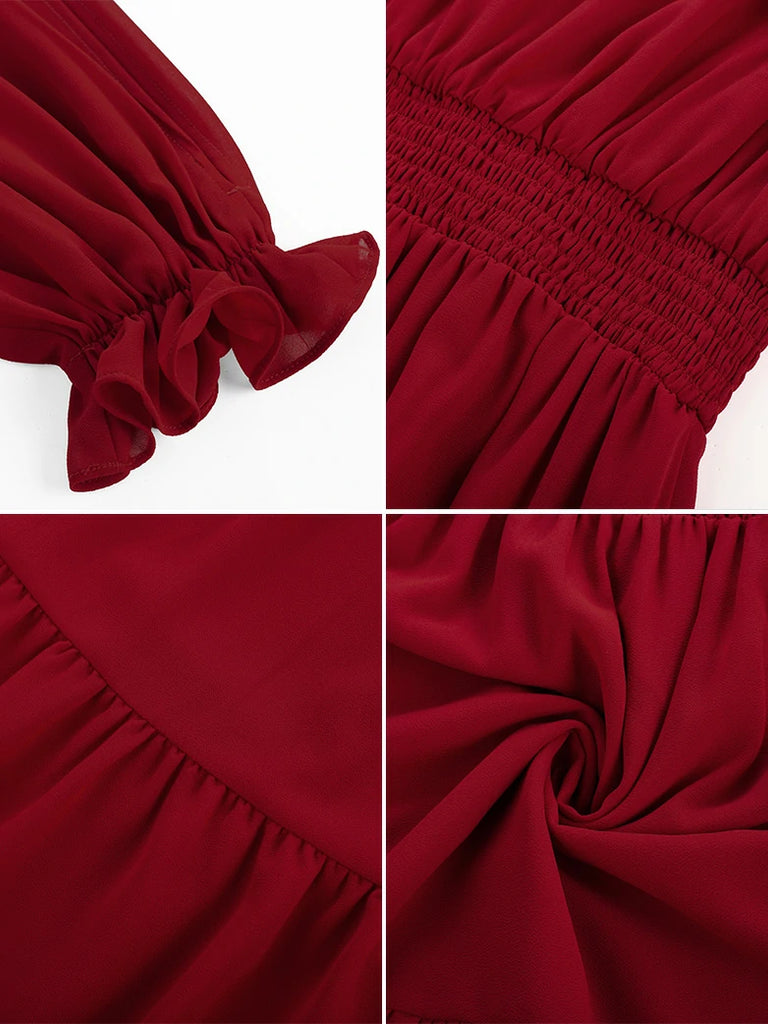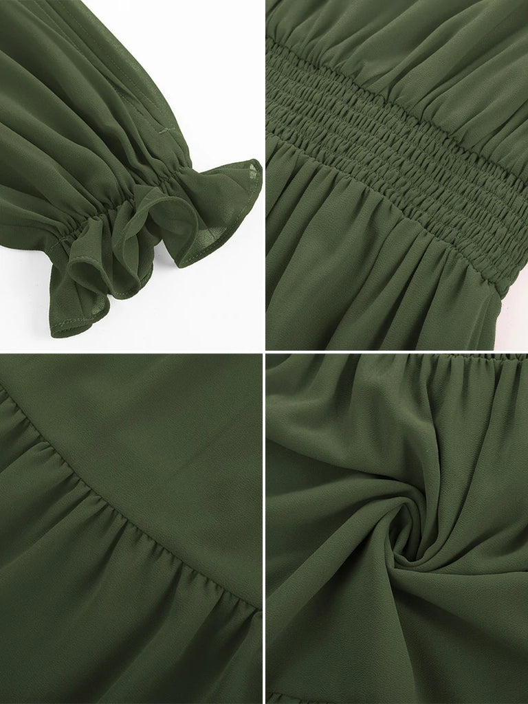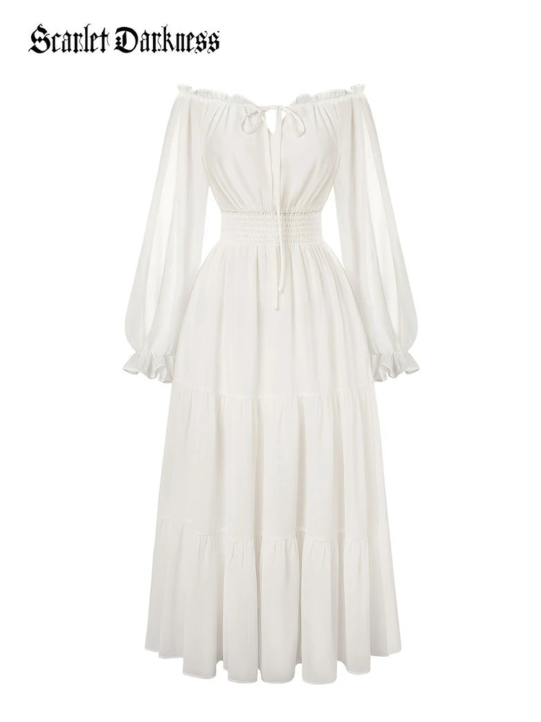 Renaissance Pocket Dress Elastic Waist Chiffon Sleeve Long Sleeve Tiered Maxi Dress
