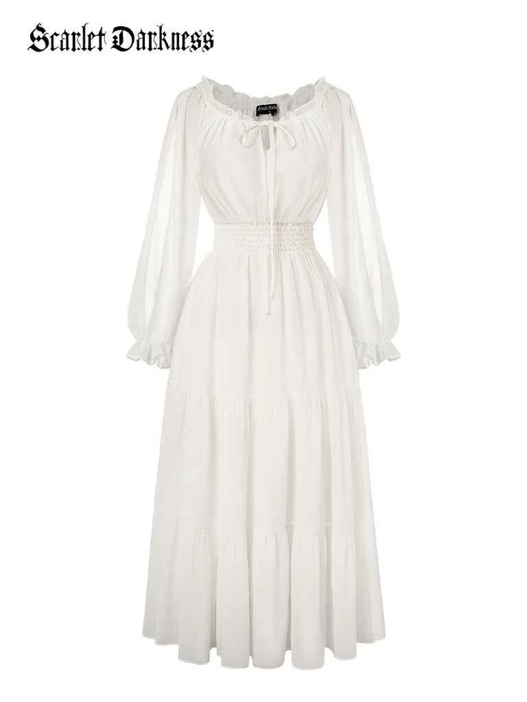 Step into a whimsical world with this Renaissance Pocket Dress! Featuring an elastic waist for a comfy fit, delicate chiffon long sleeves, and a flowing tiered maxi skirt, it’s perfect for twirling through your day. With handy pockets and a playful silhouette, this dress blends vintage charm with modern ease—ideal for making every moment feel like a fairytale.
