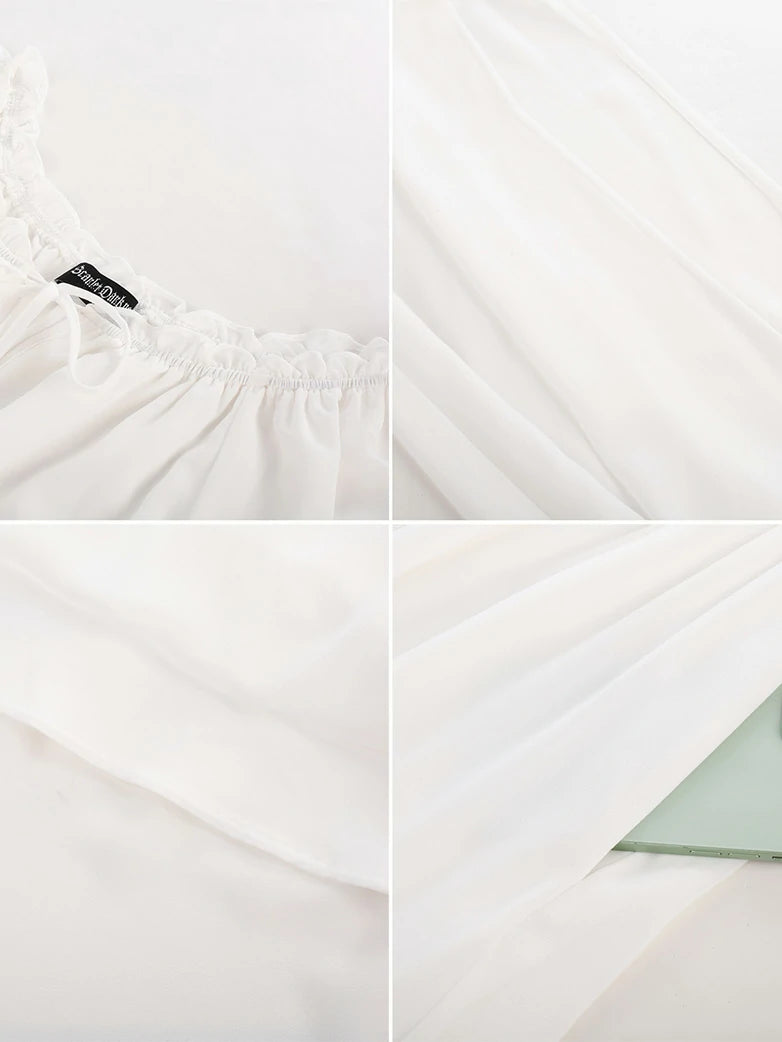 3) Elastic neckline with tie at front