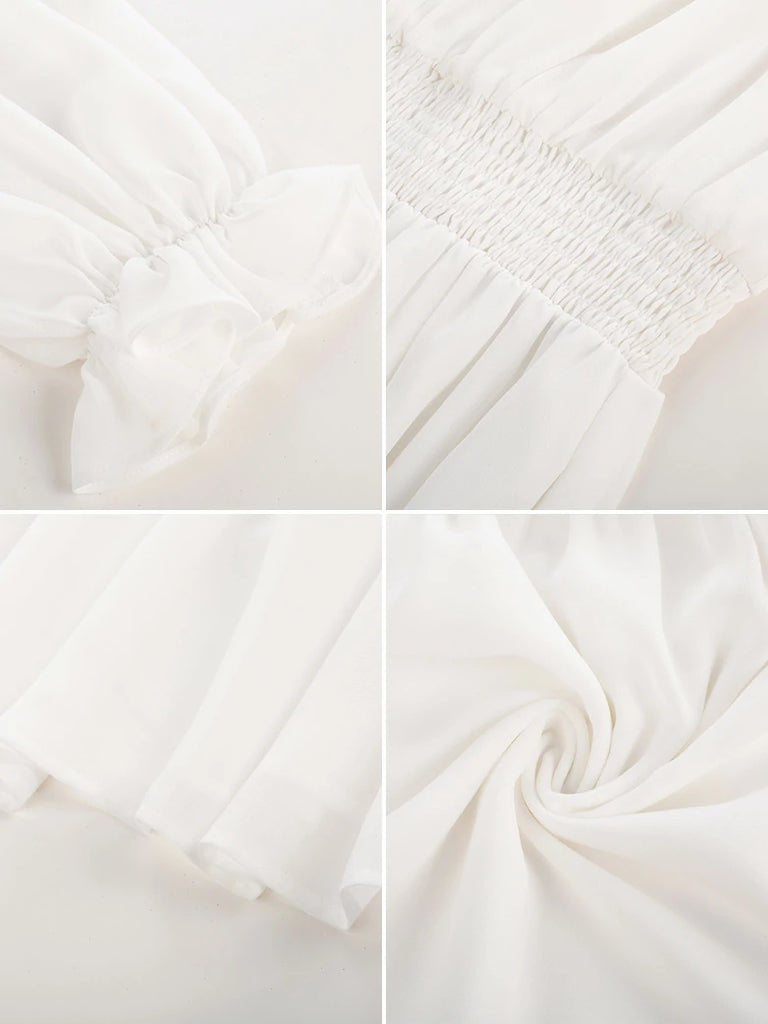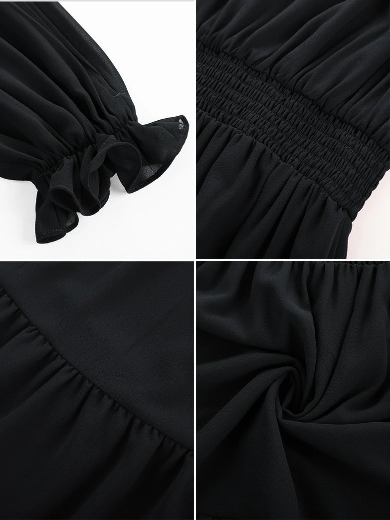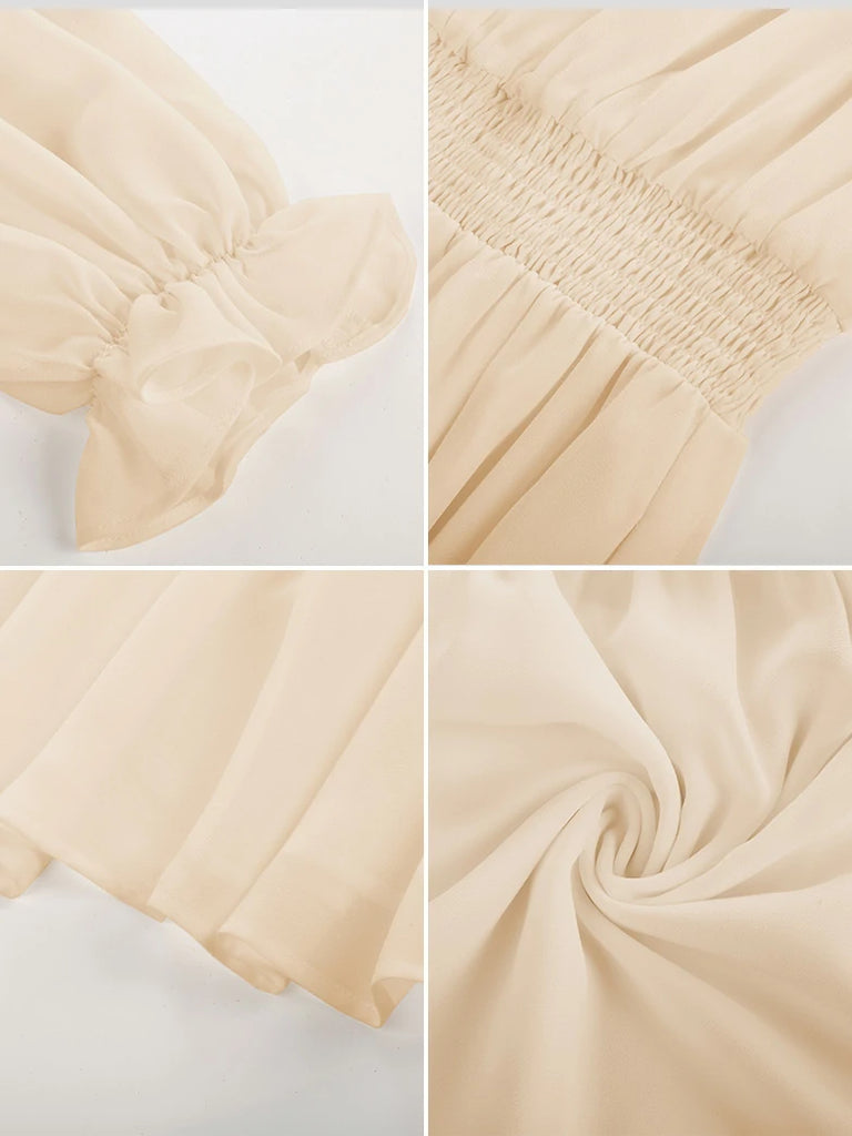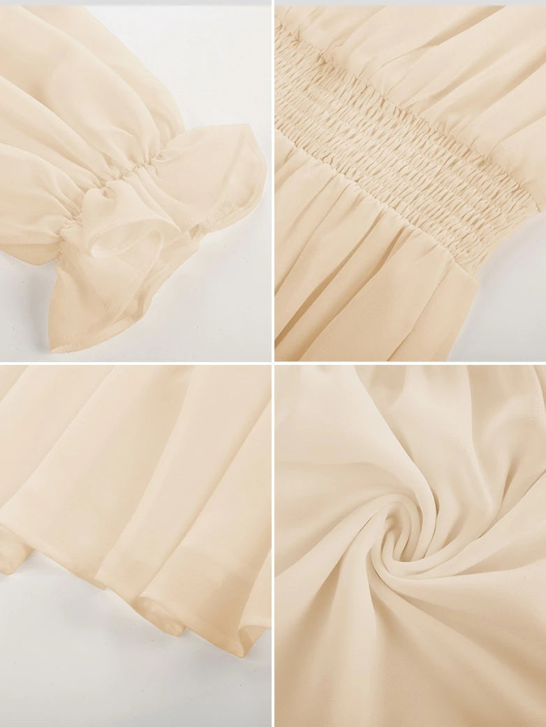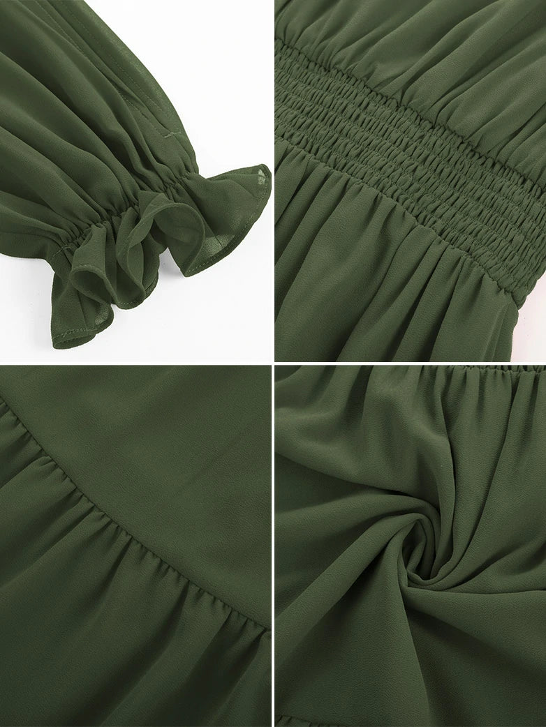 Renaissance Chiffon Sleeve Elastic Waist Pocket Dress