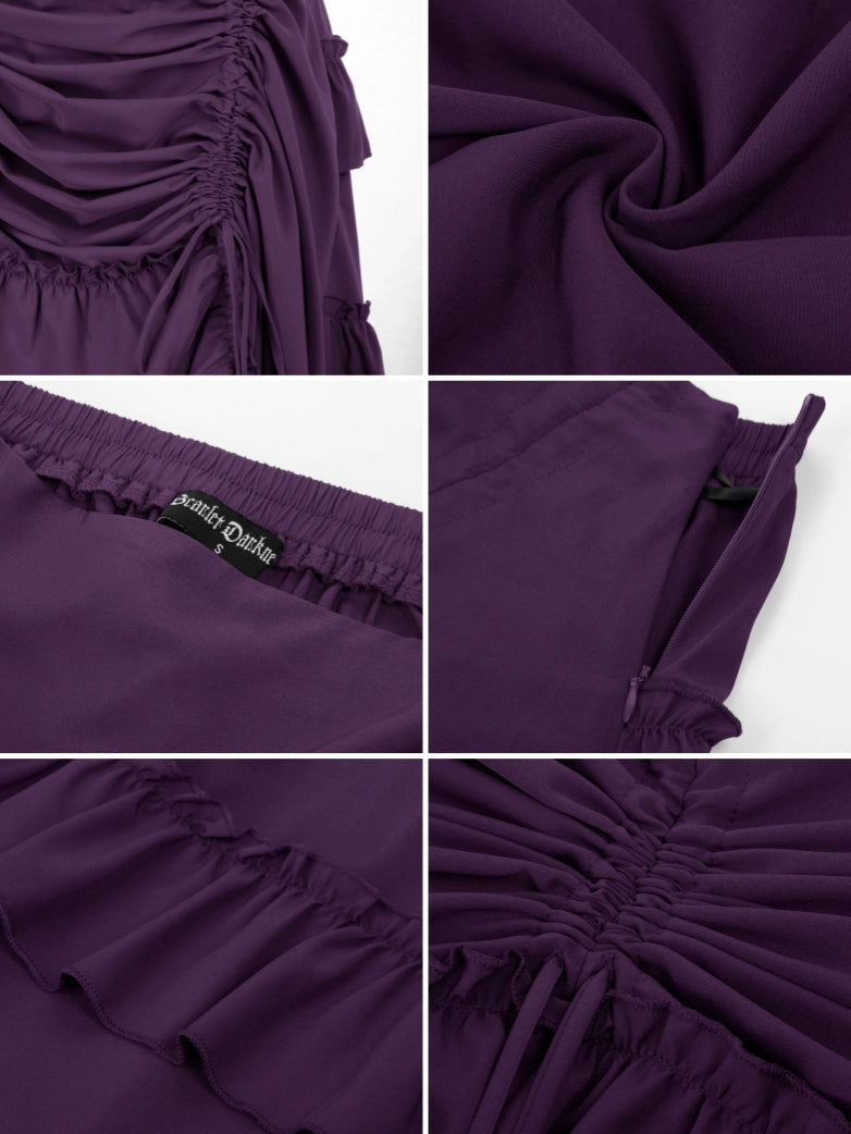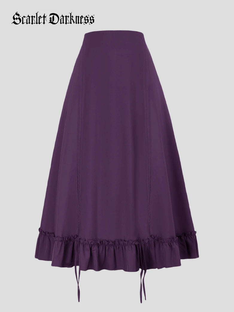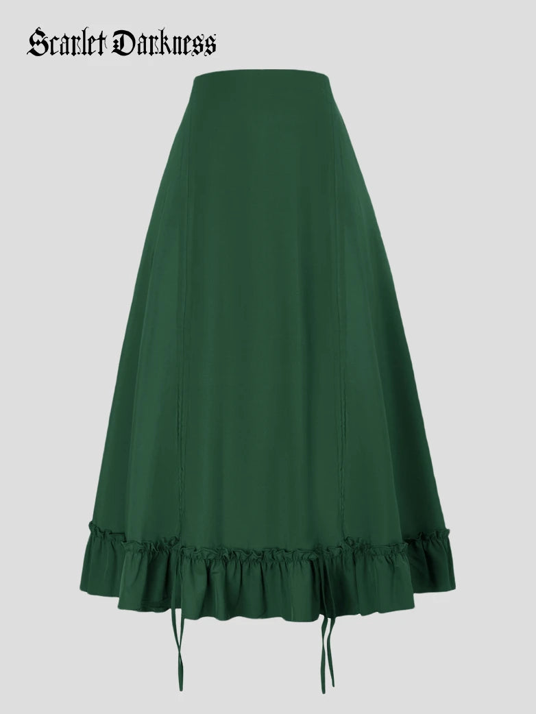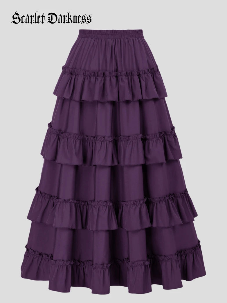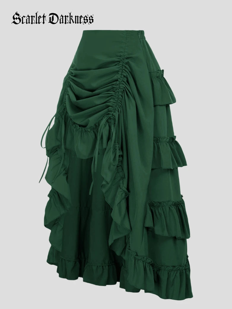 Women High-Low Skirts Adjustable Ruffle Cake Maxi Skirt