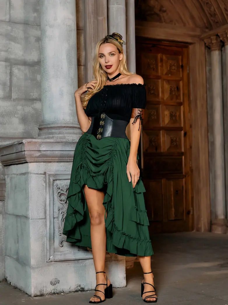 Women Steampunk High Low Skirt