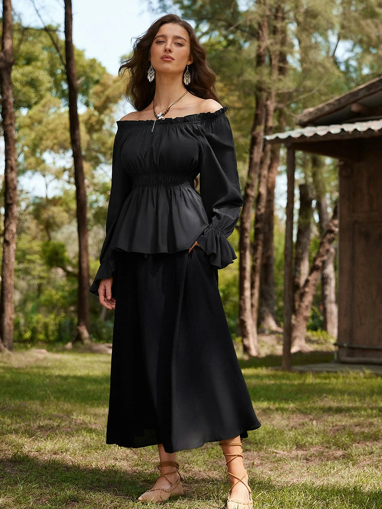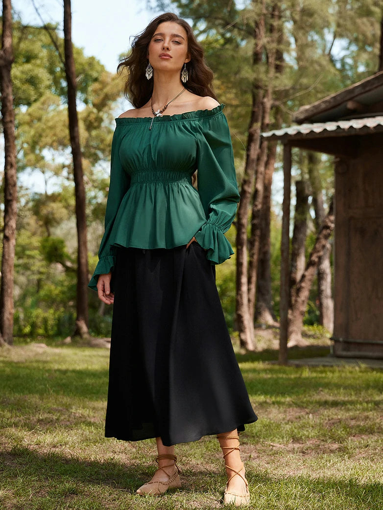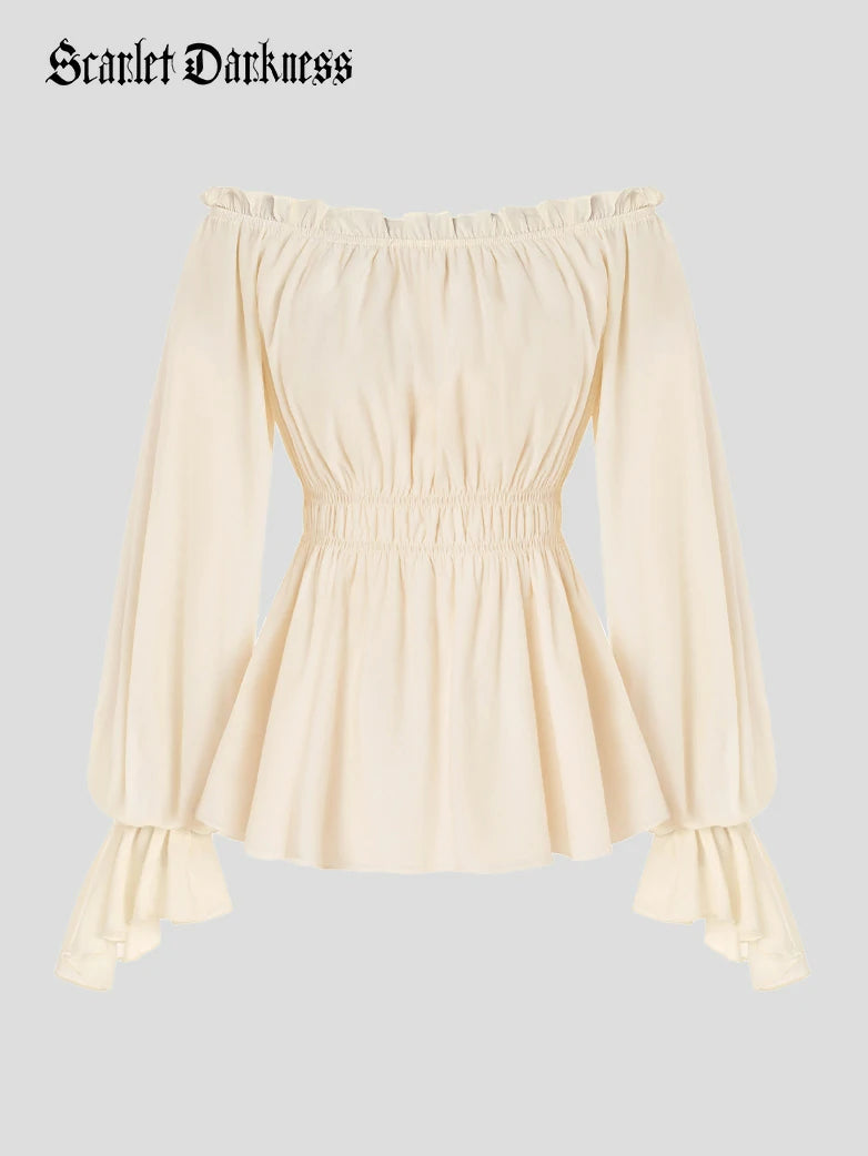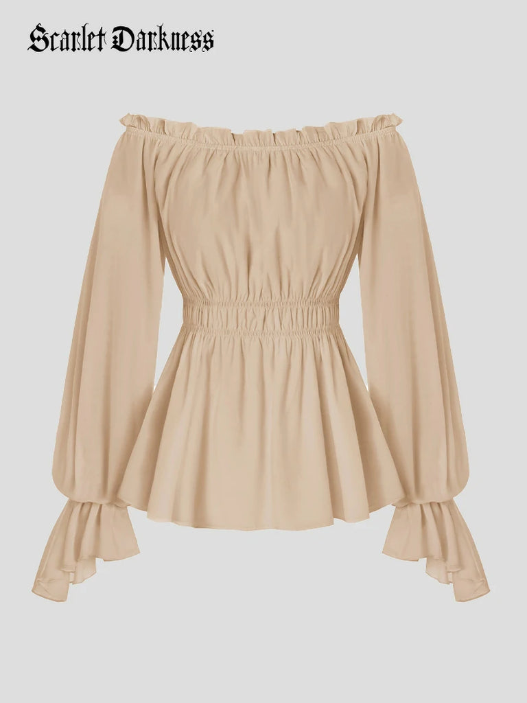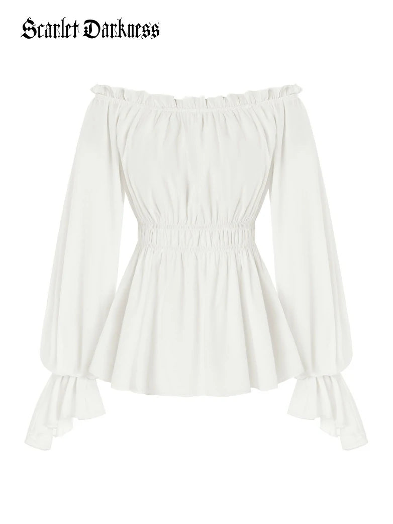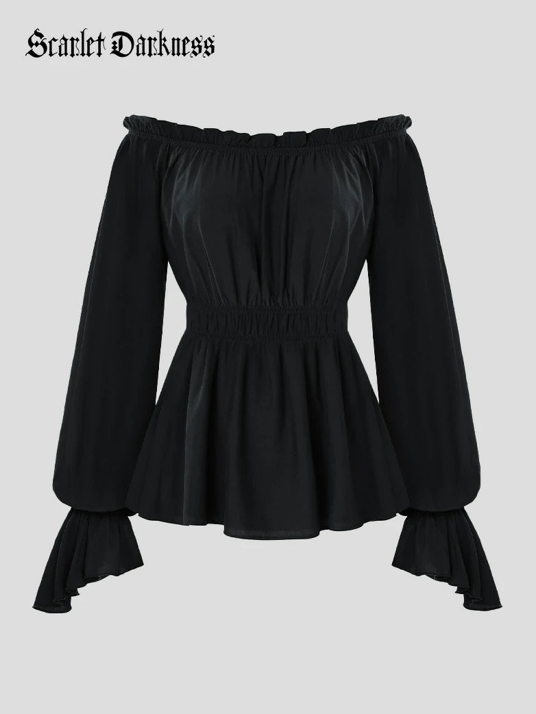 Scarlet Darkness Women Renaissance Long Sleeve Tops Off Shoulder Pullover Shirt