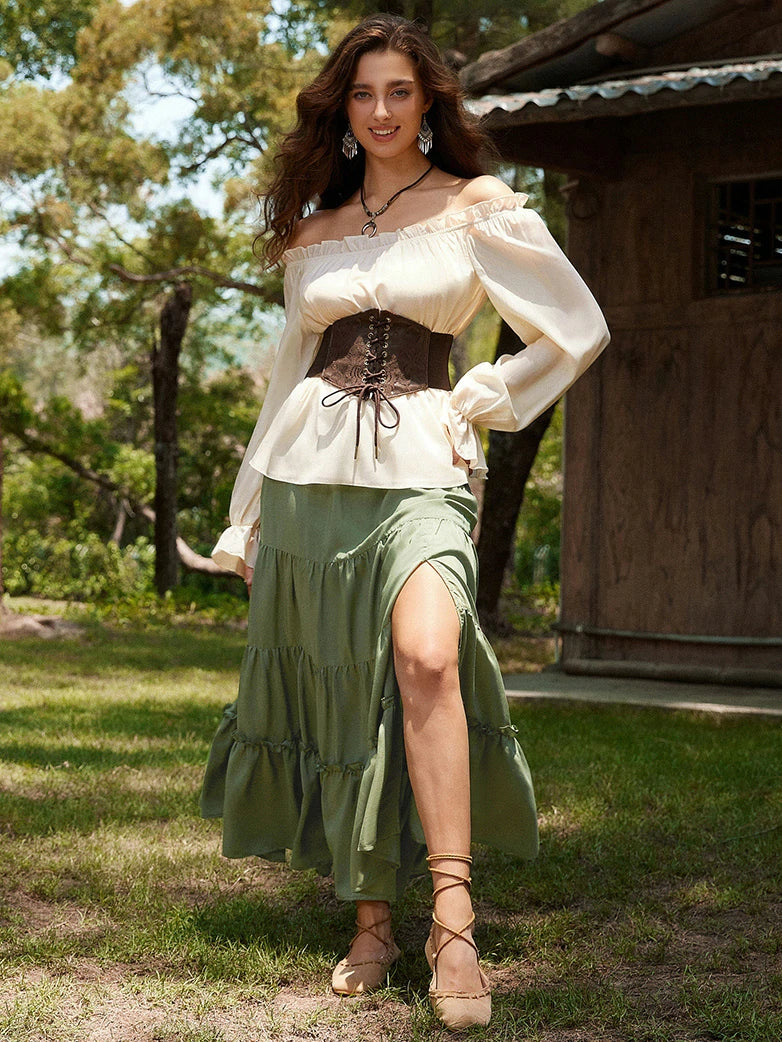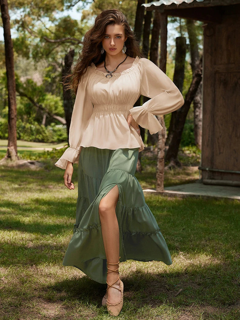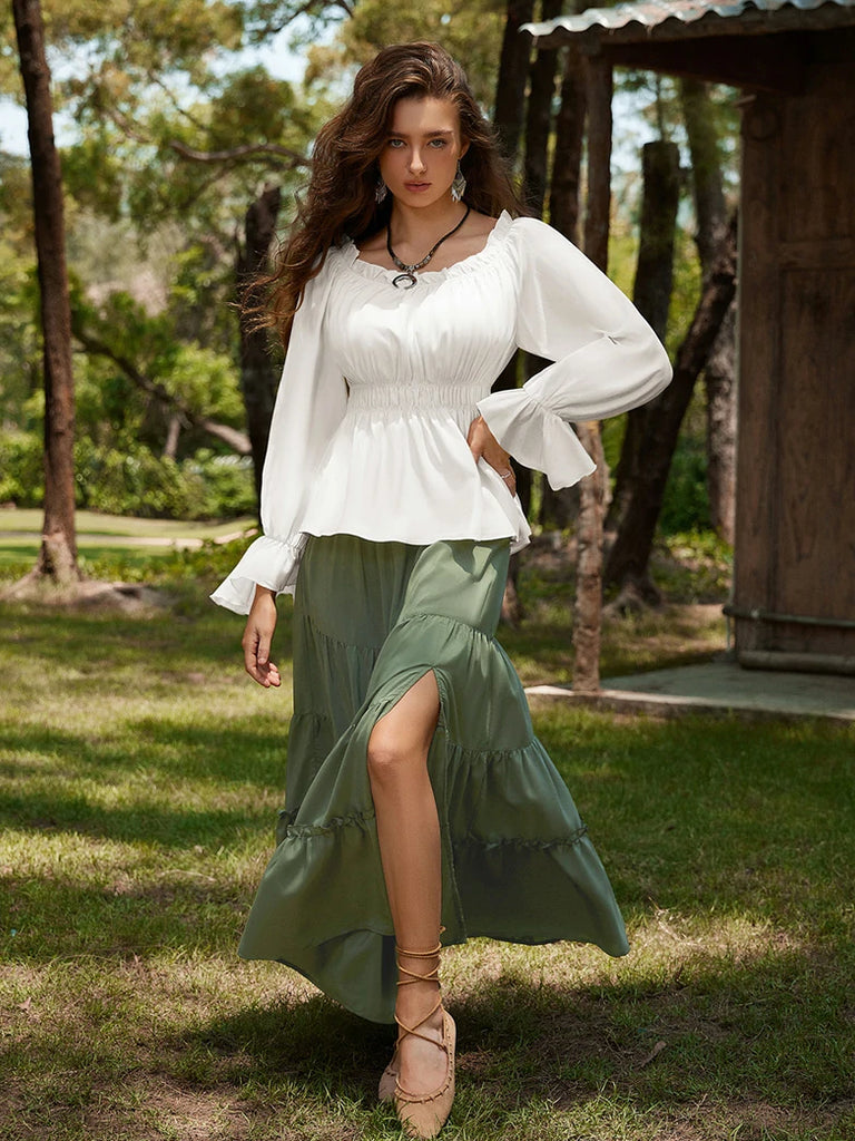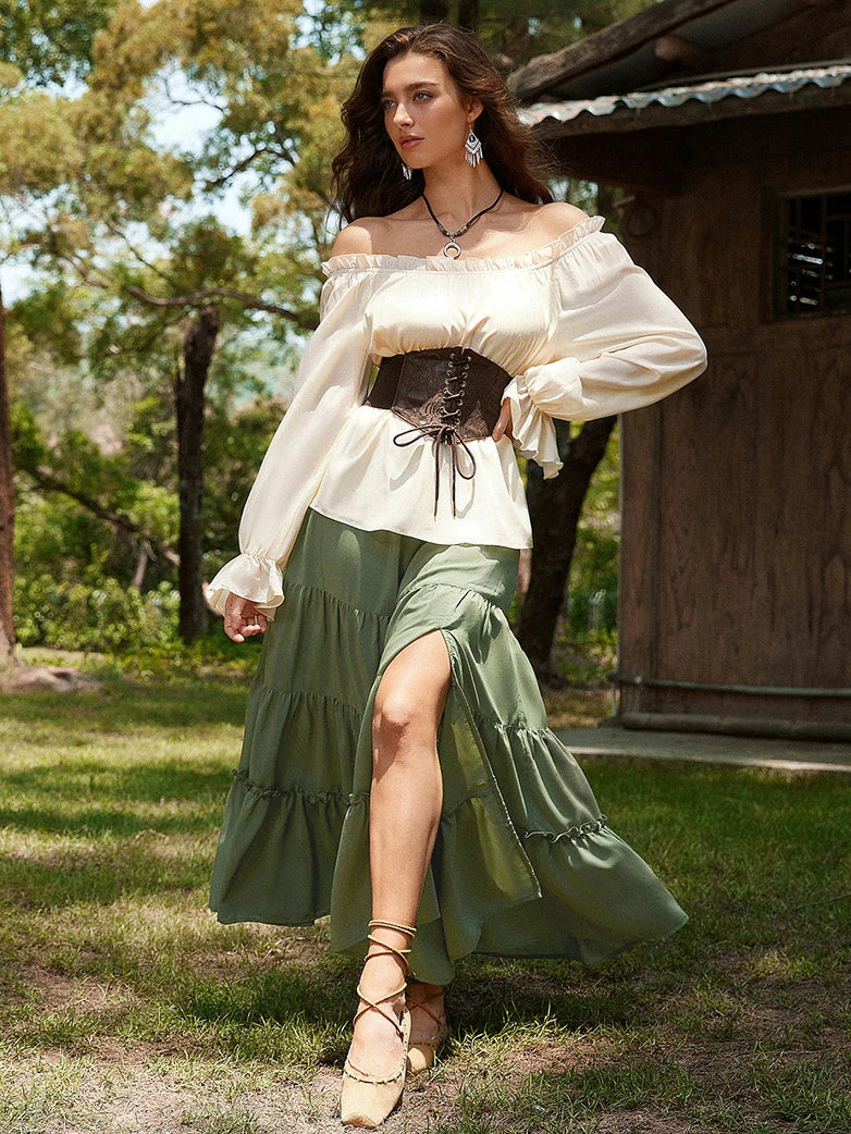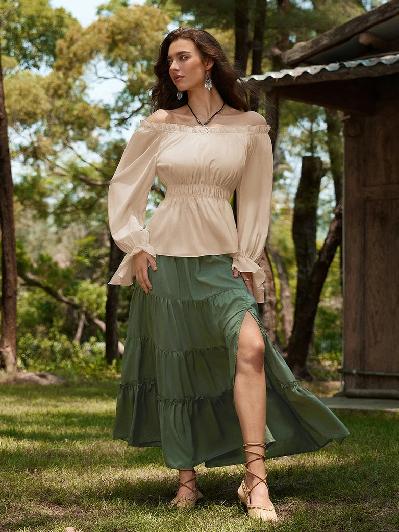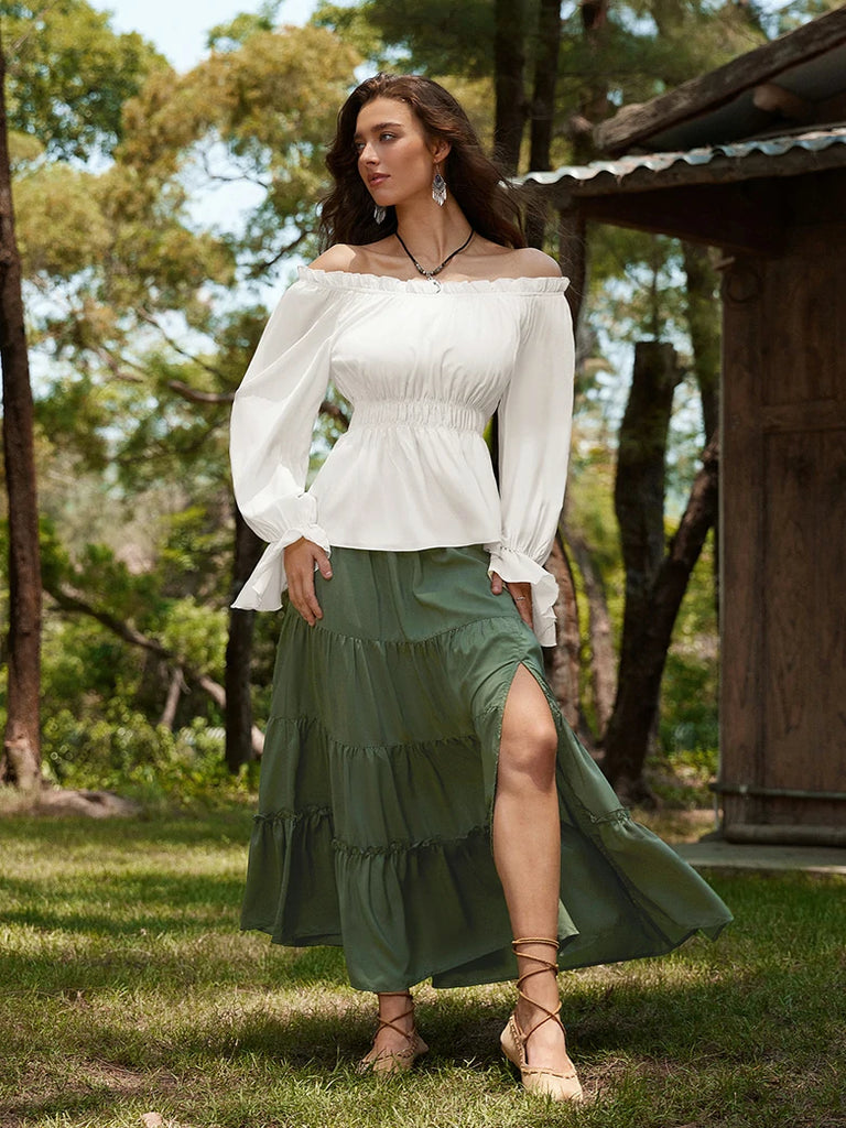 Scarlet Darkness Women Renaissance Long Sleeve Tops Off Shoulder Pullover Shirt