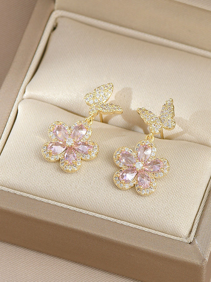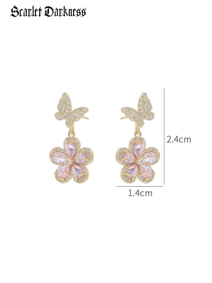 Romantic Floral Butterfly Drop Earrings